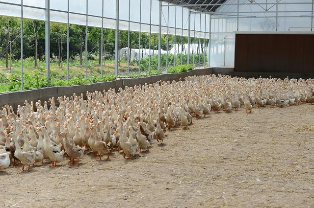 8、適當運動(dòng):大棚前設一運動(dòng)場(chǎng),略小于大棚面積,15日齡后可根據天氣情況,掛起南面塑料薄膜放出鴨子自由運動(dòng):其作用是:(1)增加自然光照,增強肉鴨的抗病能力和免疫能力。(2)便于大棚通風(fēng)和污物的清理。